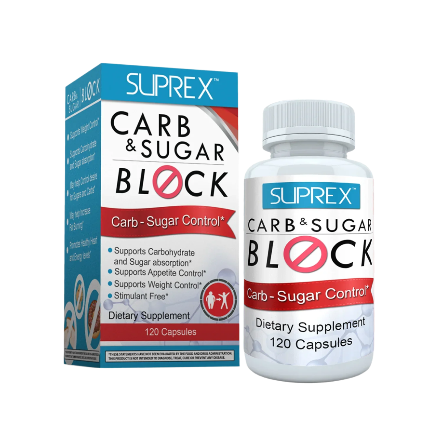 SUPREX Carb & Sugar Block is a natural formula based on herbs, fiber, minerals, and plant extracts that can help reduce the negative impact of excess carbohydrates and sugars. It can help reduce the enzyme amylase in the stomach, which can help reduce blood sugar spikes.*