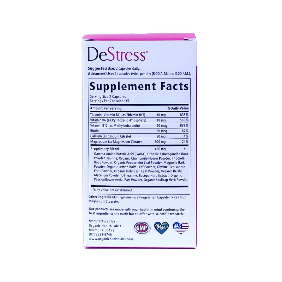 DeStress offers a multi-action approach to relieving daily stress, reduce anxiety, enhancing focus and restoring emotional balance—all in a non-drowsy formula.