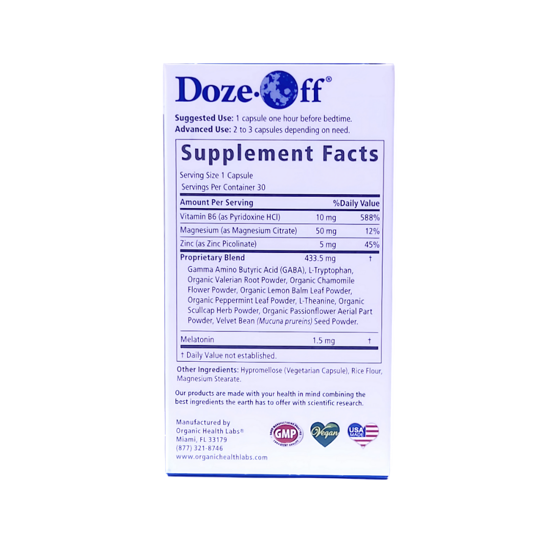 Doze-Off is a natural, safe, and effective sleep aid formulated to support deep, restful sleep and help you wake up focused and energized.