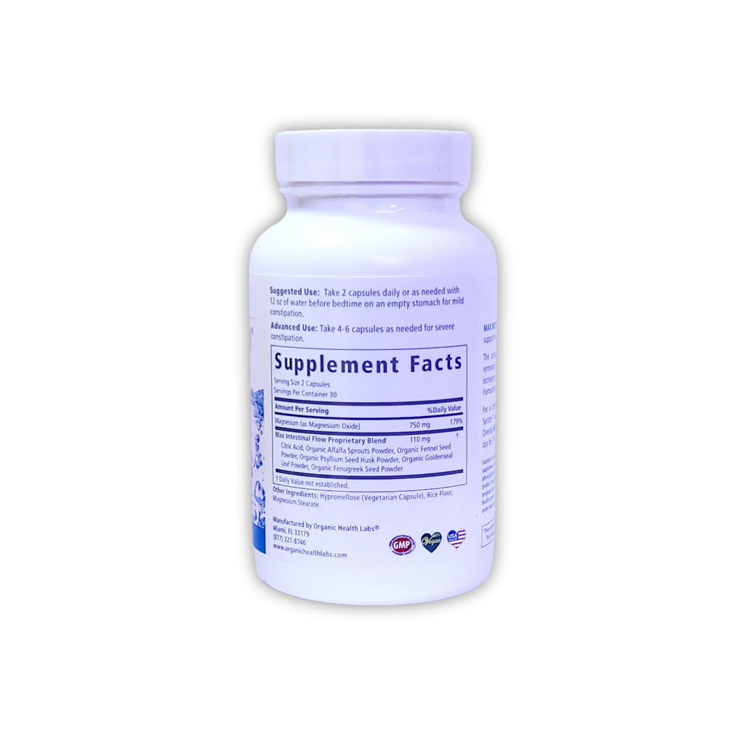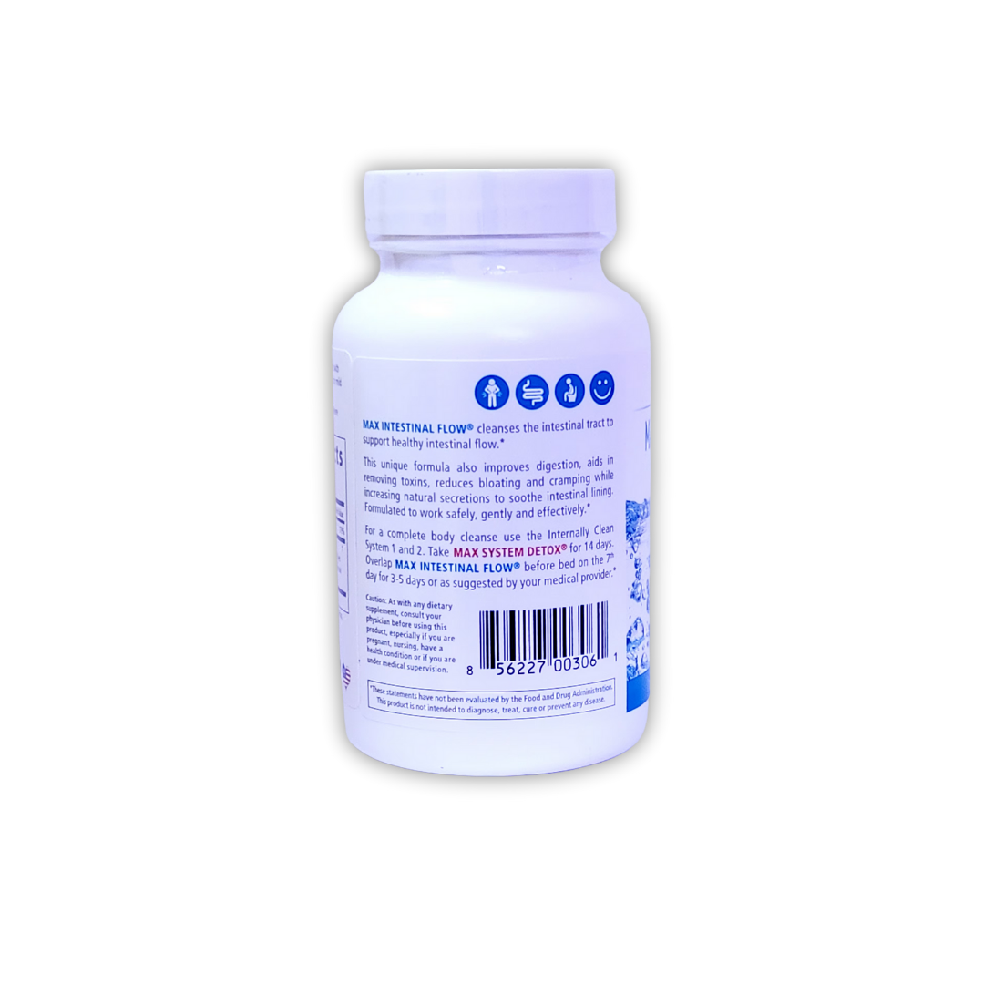 Max Intestinal Flow oxygenates, cleanses, and detoxifies the colon. It helps relieve constipation, reduce gas and bloating, enhance digestion, and promote balanced intestinal function. Formulated to work safely, gently, and effectively.