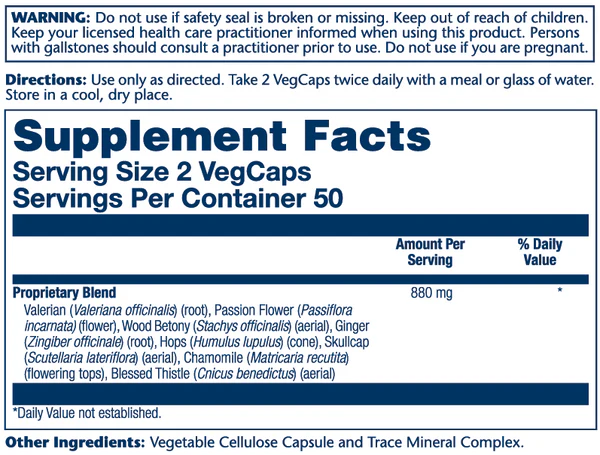 Nerve Blend SP-14 contains a proprietary blend of Valerian, Passion Flower, Wood Betony, Ginger, Hops and Skullcap. This blend is formulated using the holistic principle that herbs properly combined are greater than the total of each herb separately. Each blend is created with a homeopathically prepared mineral formula designed to work with the herbs.