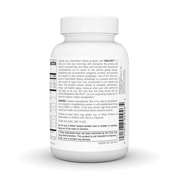 Upgrade your intermittent fasting program with REALFAST™. It helps you hack your mornings with energizers like ginseng, B-3 (niacin), and green tea, and helps curb cravings with cayenne and L-phenylalanine—so it’s easier to fast without getting hangry. Ingredients such as resveratrol, bergamot, turmeric, and quercetin are included to help enhance autophagy—one of the main purposes of intermittent fasting. Autophagy is a process where your cells recycle & repair their own components to run cleaner and leaner. The benefits include cellular & metabolic performance, energy, and healthy aging—because when your cells perform at their peak, so do you.